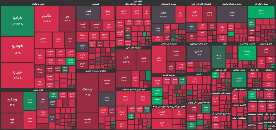 نمادهای فولاد، شپنا و فملی بیشترین تاثیر منفی را بر روی شاخص کل گذاشتهاند و تنها تاثیر گذار مثبت تا این لحظه از معاملات نماد میدکو بوده است.