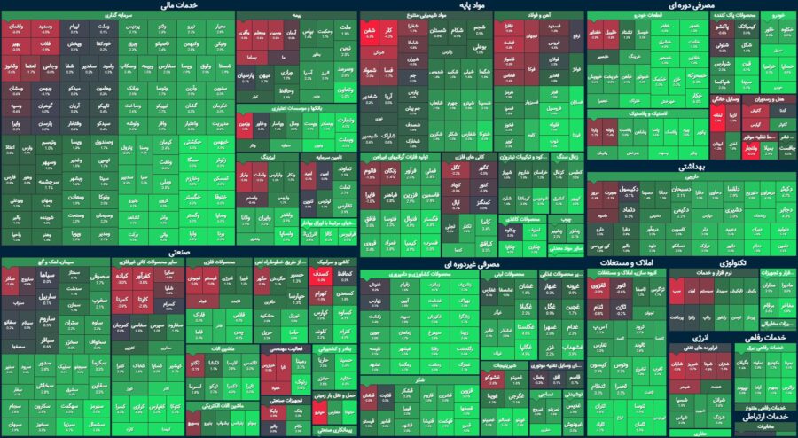 با انتشار اخبار مثبت بر مذاکرات برجامی، تقاضا برای گروه خودرویی و بانکی با تقاضای افزایش یافته است و بسیار از نمادهای این گروه ها با صف خرید همراه شده اند. در نقطه مقابل پالایشی ها در رنج منفی معامله می شوند.