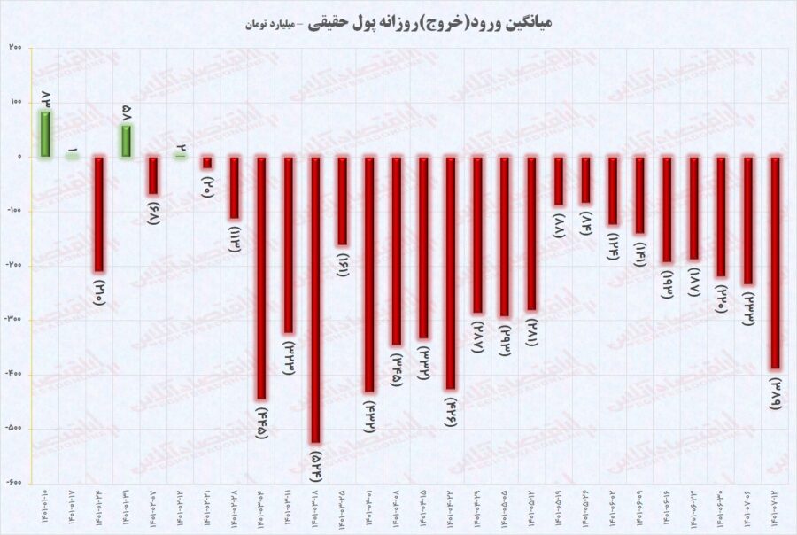 در هفته دوم مهر ماه حقیقیها به طور میانگین روزانه ۳۸۹ میلیارد تومان از بورس خارج کردند که از یکسو نسبت به هفته گذشته افزایش ۶۷ درصدی را نشان می دهد و از سوی دیگر، بالاترین میزان طی ۱۲ هفته گذشته محسوب می شود.