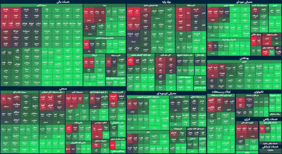 فملی با ۱٬۱۵۴، وبملت با ۱٬۱۱۳ و شستا با ۱٬۰۳۰ واحد بیشترین نقش را در سبزپوشی شاخص کل داشتند. در نقطه پالایشی ها از رشد بیشتر شاخص کل جلوگیری کردند؛ شبندر با ۵۴۲، شپنا با۴۶۰ و شبریز ۳۷۱ بیشترین تاثیر منفی را بر روی شاخص کل داشت.