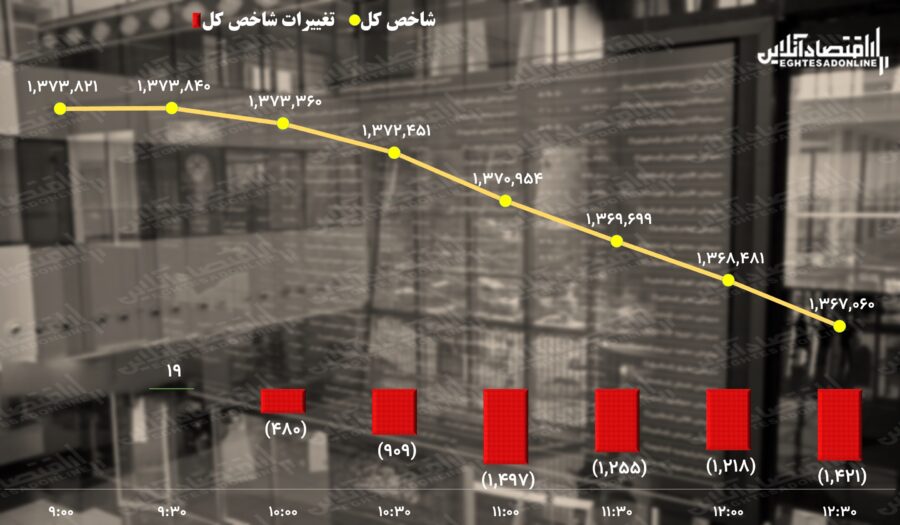 شاخص کل با افت بیش از ۶هزار و ۷۵۰ واحد تا سطح یک میلیون و ۳۶۷هزار واحدی پایین آمد. نگاهی به روند تغییرات ساعتی شاخص کل نشان می دهد که هرچه به انتهای بازار نزدیک می شدیم، فشار فروش در کلیت بازار افزایش پیدا می کرد؛ در حقیقت معامله گران در یک ساعت ابتدایی منتظر برگشت احتمالی بازار بودند اما با ناامیدی به سمت عرضه پیوستند.